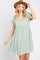 A striped dress featuring short sleeves, side pockets, a v-neckline and a back keyhole cutout with a button closure. Double lined.