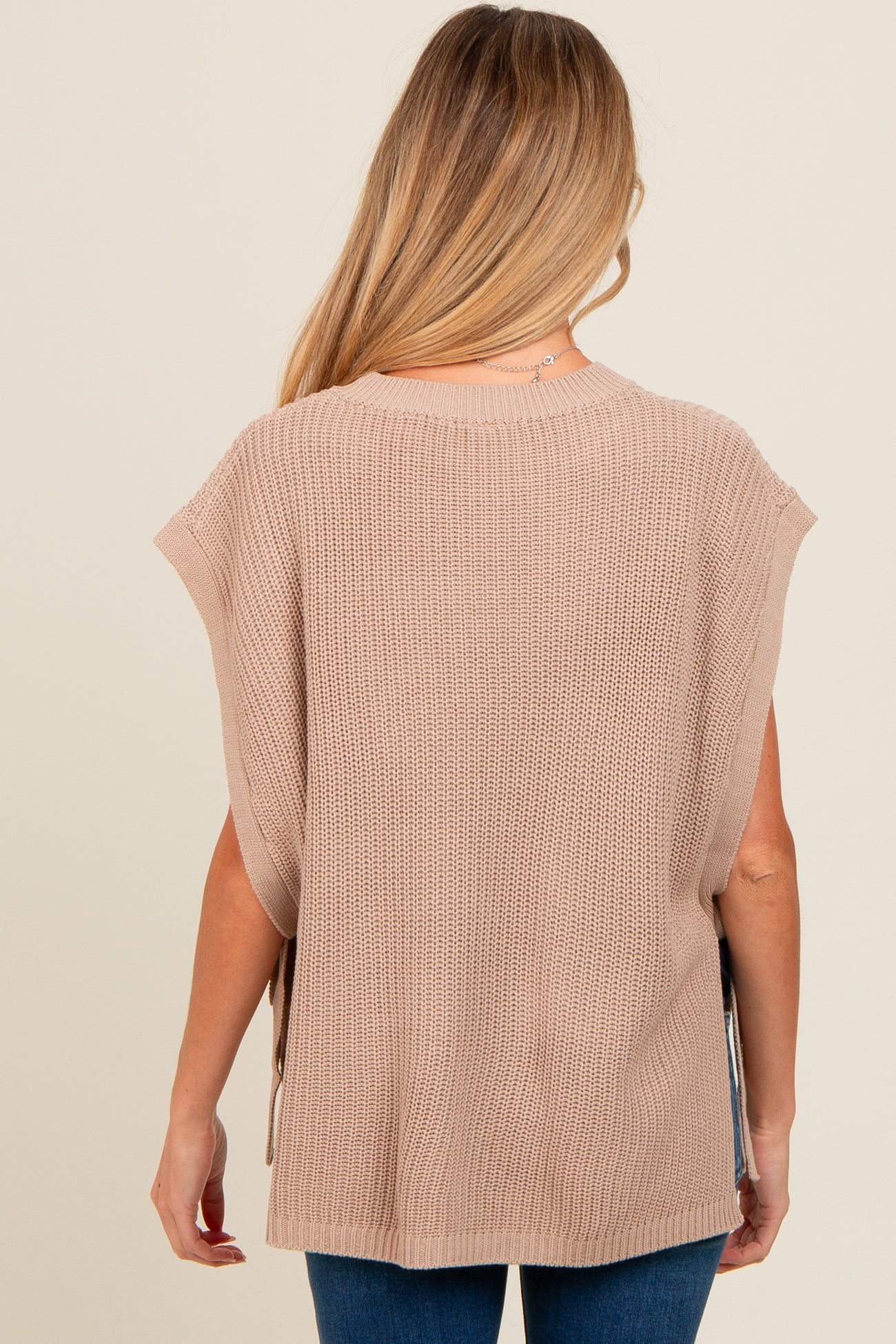 Mocha Chunky Knit Side Tie Maternity Sweater Top