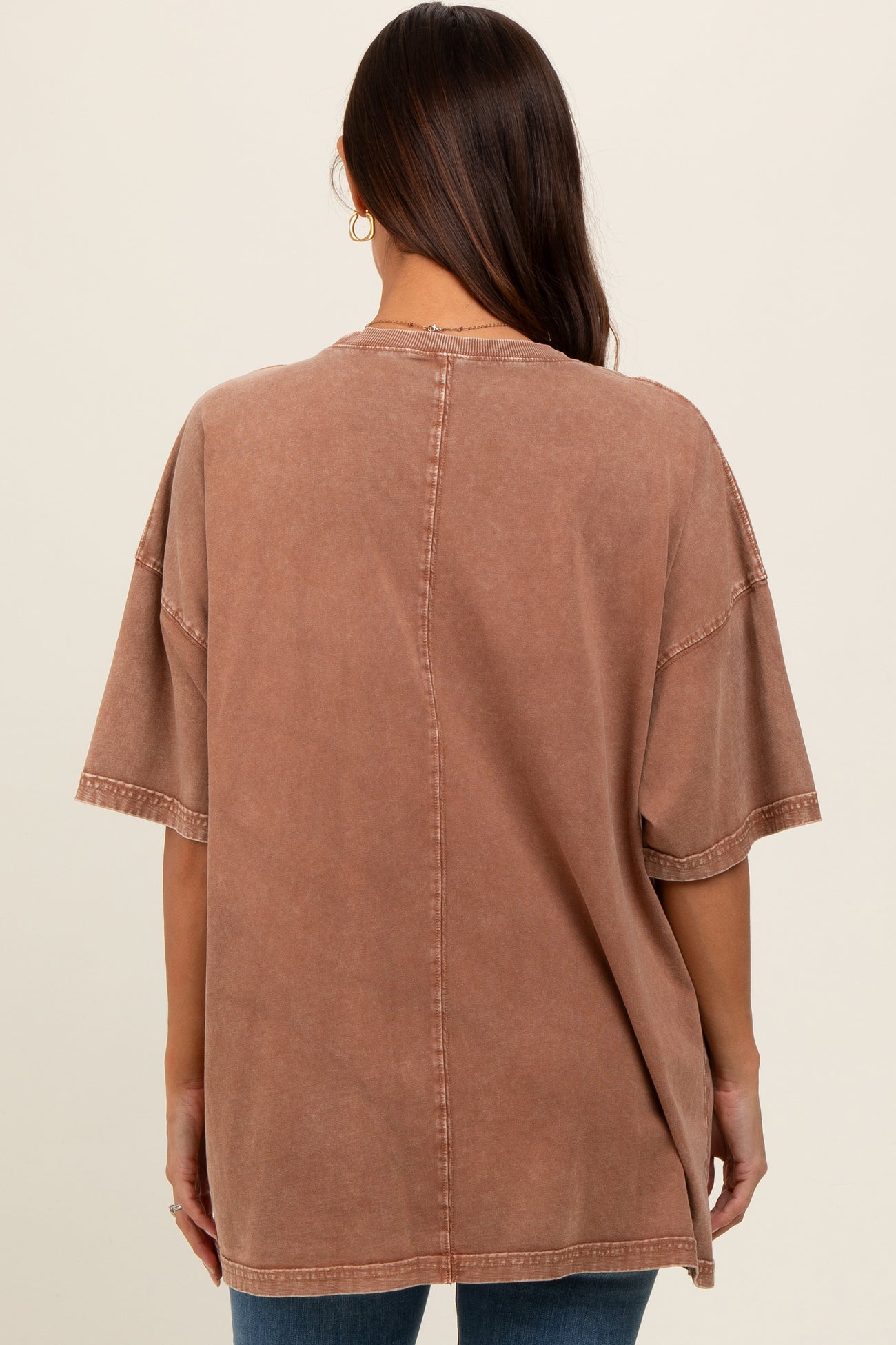 A solid maternity oversized short sleeve top with a crew neckline and faux pocket detail on chest.