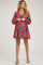 A floral and animal printed maternity dress featuring a v-neckline, long puff sleeves, an empire waist, a ruffle hem and double lining.