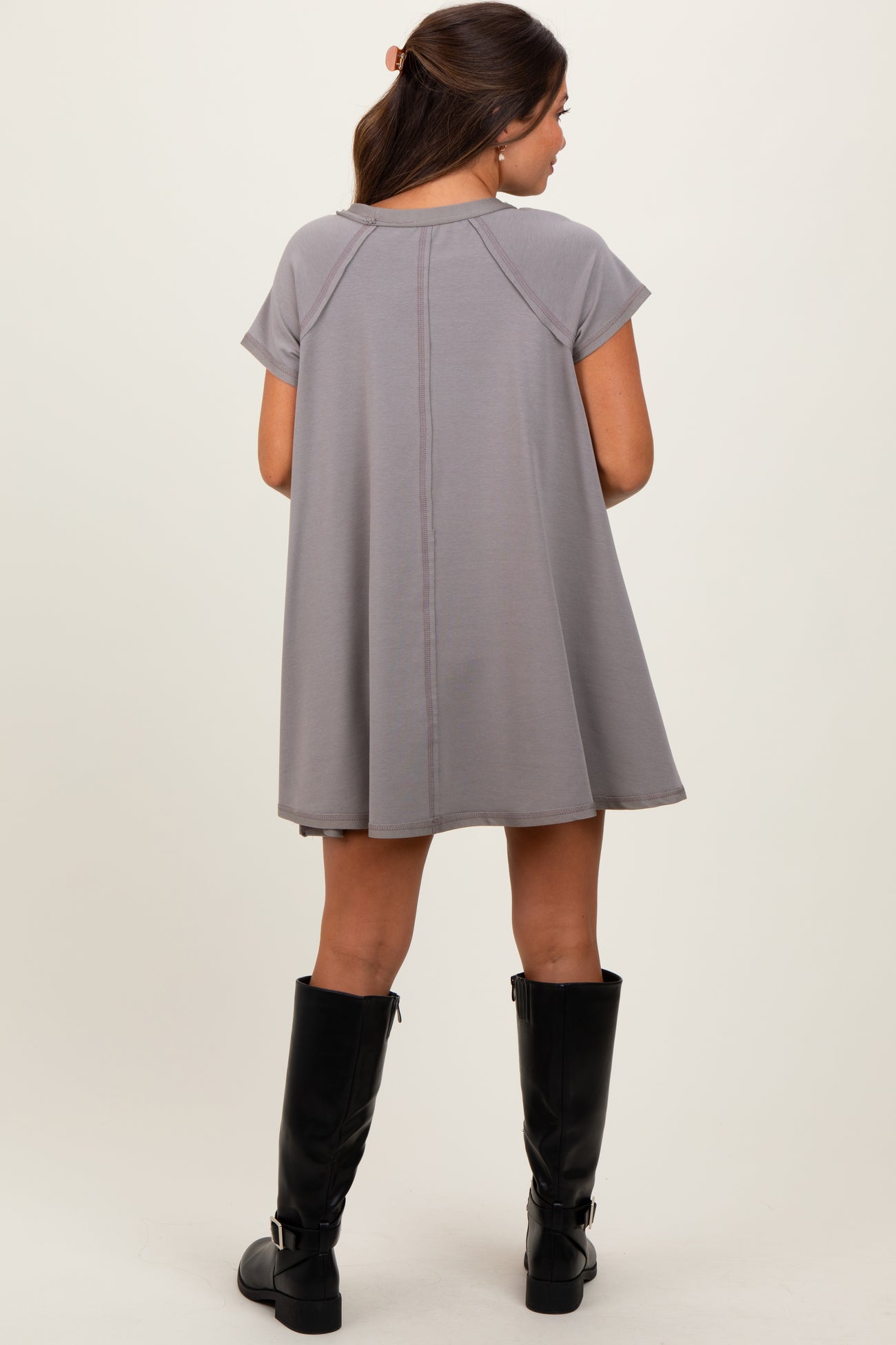 Mocha French Terry Basic Short Sleeve Maternity Mini Dress
