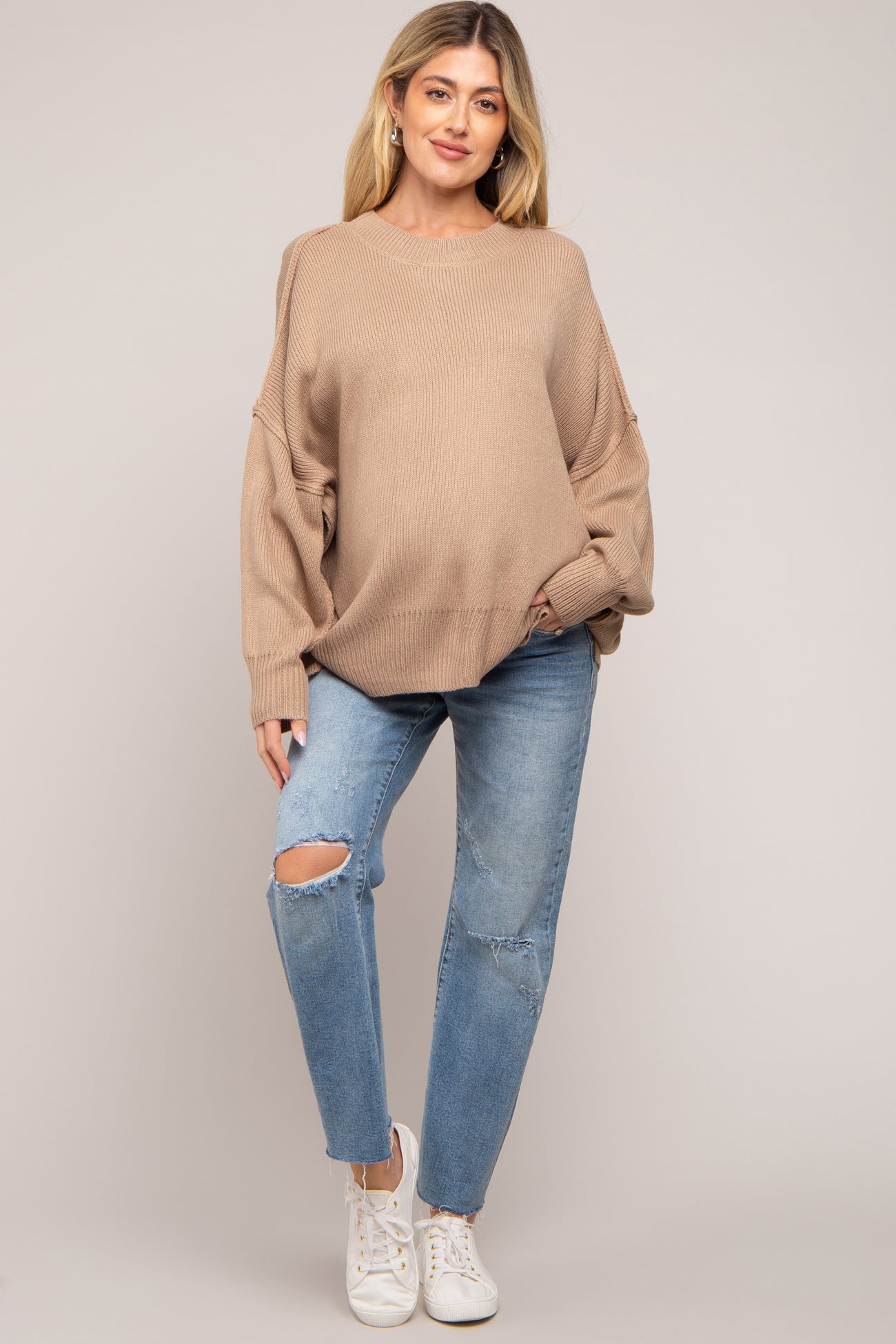 A solid basic maternity sweater in a relaxed fit with a drop shoulder and two short side slits.