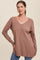 A solid long sleeve knit top with a v-neckline and two side slits.