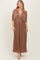 Mocha Pleated Satin Dolman Sleeve Maxi Dress