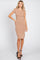 A ribbed fitted dress featuring short sleeves, a side slit and a rounded neckline.