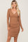 Mocha Ribbed Knit Ruched Wrap Fitted Dress