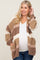 A striped open knit maternity cardigan sweater featuring drop shoulder long sleeves, and open front, and side pockets.