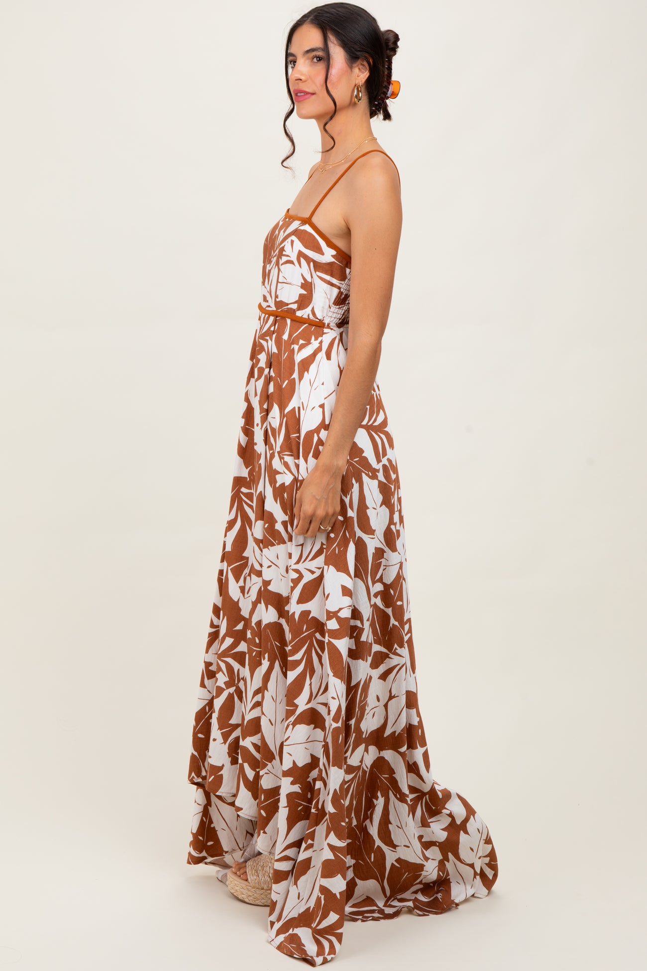 Mocha Vintage Floral Smocked Top Sleeveless Maxi Dress