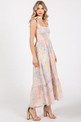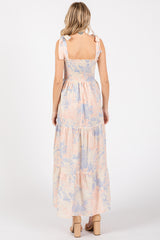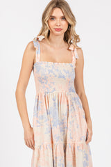 Multicolor Pastel Print Shoulder Tie Tiered Midi Dress