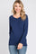 A basic top featuring long raglan sleeves and a rounded neckline. Rolled accents along the neckline, sleeves, and bottom hem.