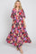 Navy Blue Floral Deep V-Neck Tiered Maxi Dress
