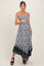 Navy Blue Floral Smocked Handkerchief Hem Maternity Maxi Dress