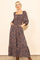 A floral print maxi dress featuring a square neckline, 3/4 length sleeves, an empire waist a foldover back, side pockets and a ruffle hem.