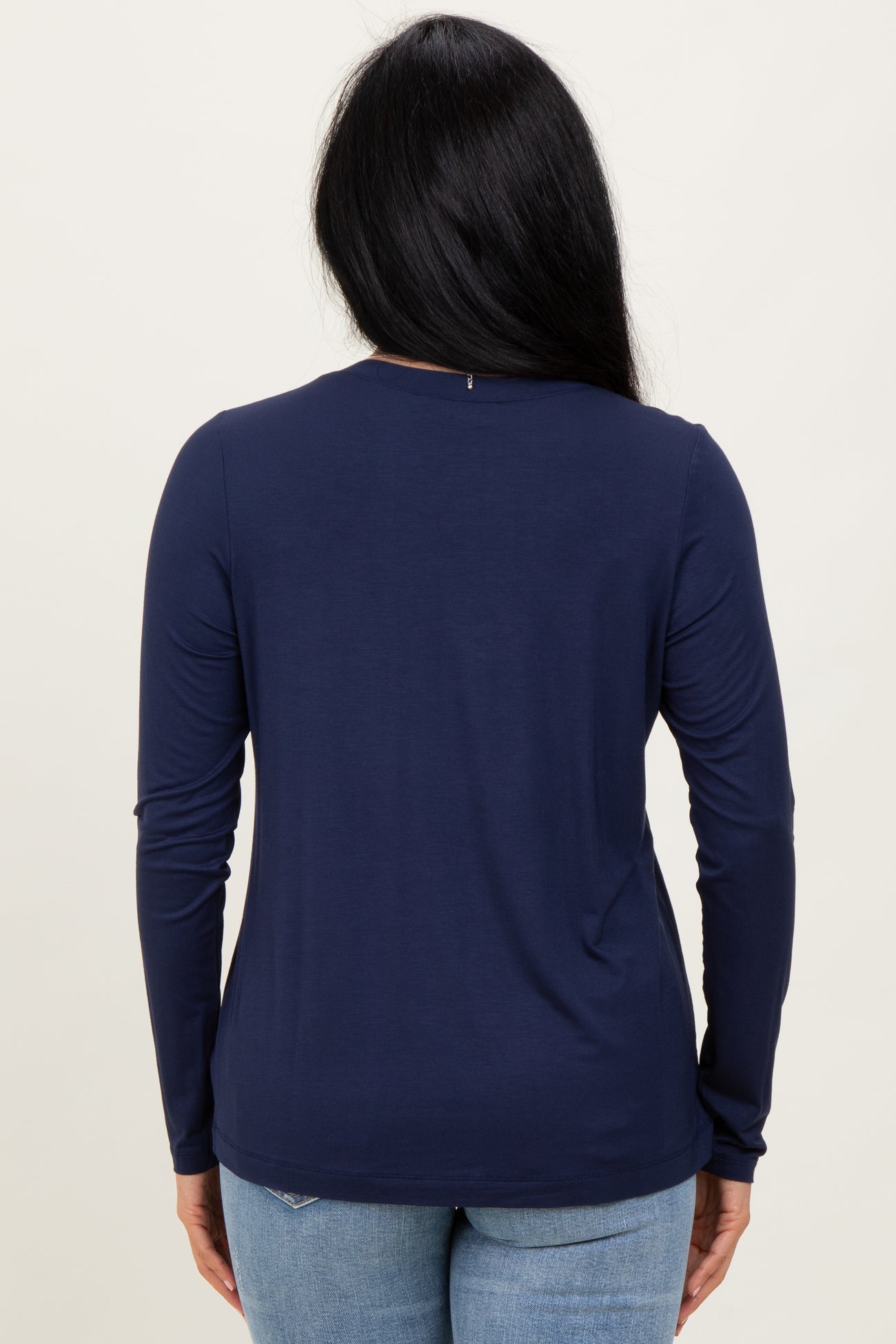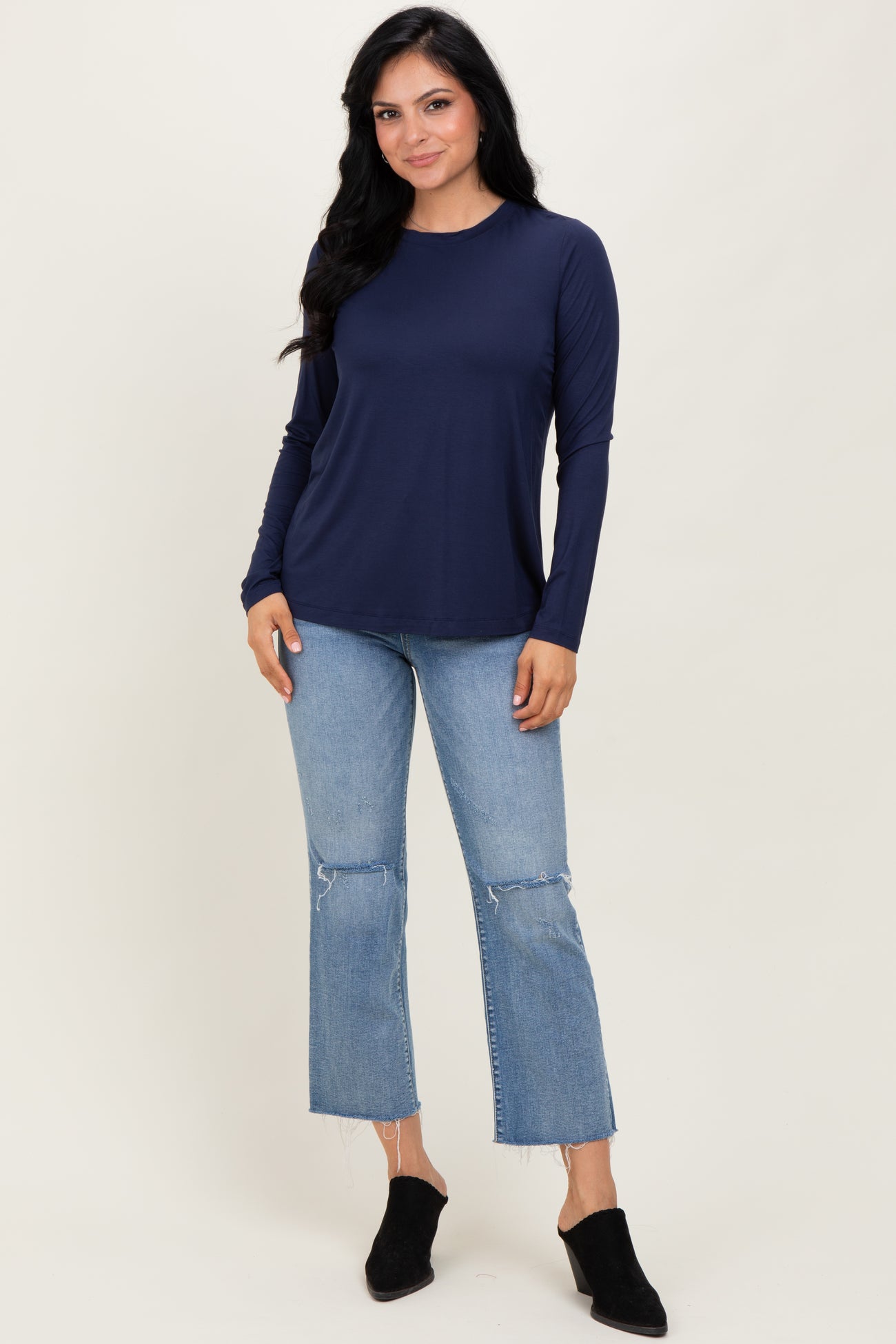 Upgrade your basics with this Navy Blue Long Sleeve Top. Crafted from a soft, breathable fabric, it offers all-day comfort with a sleek, fitted silhouette. The classic crew neckline and versatile navy blue shade make it perfect for layering or wearing solo. Pair it effortlessly with jeans, skirts, or trousers for a casual or polished look. Ideal for work, weekends, and everything in between, this long sleeve top is a wardrobe essential you won't want to miss. Easy to care for and designed to fit comfortably, it’s your go-to piece for timeless style. Available in multiple sizes.