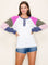 Navy Blue Multi Textured Rib Colorblock Raglan Long Sleeve