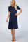 A solid ribbed short sleeve dress with scoop neckline and tiered body.