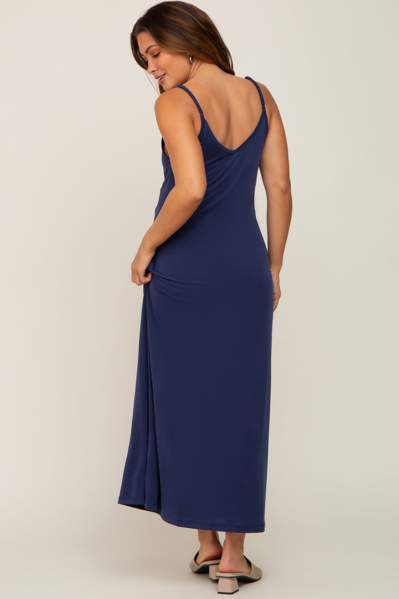 Navy Blue Sleeveless V-Neck Maternity Maxi Dress