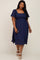 Navy Blue Smocked Square Neck Flutter Short Sleeve Plus Midi Dress
