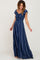 Navy Blue Striped Off Shoulder Front Tie Maxi Dress
