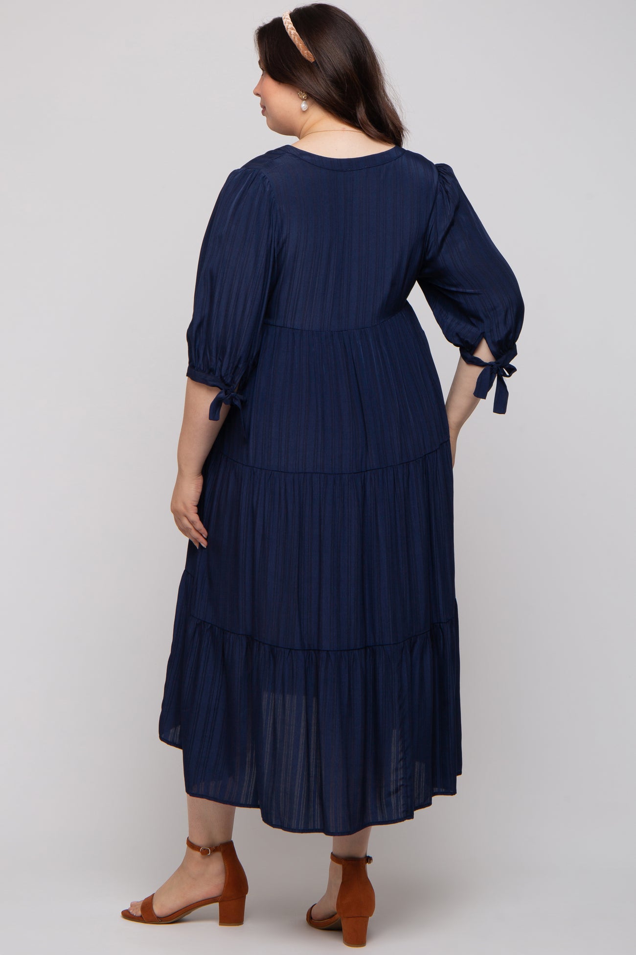 Navy Blue Striped Tiered Maternity Plus Midi Dress