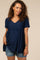 A maternity peplum top featuring a swiss dot texture, short sleeves and a rounded v-neckline.