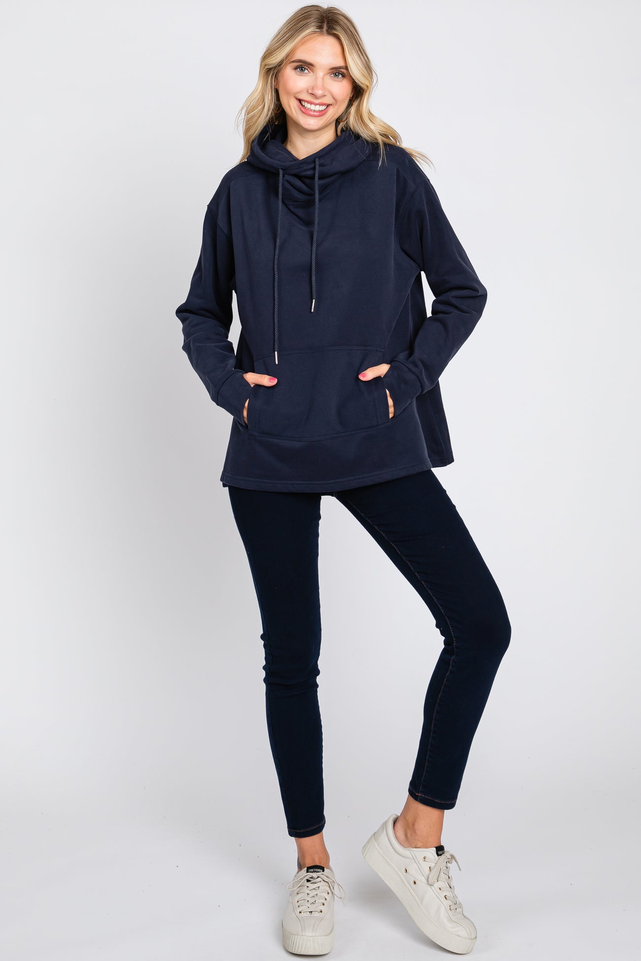 Details A solid long sleeve hooded sweatshirt with an adjustable drawstring tie, large front pocket and thumbhole detail on sleeve. Content + Care