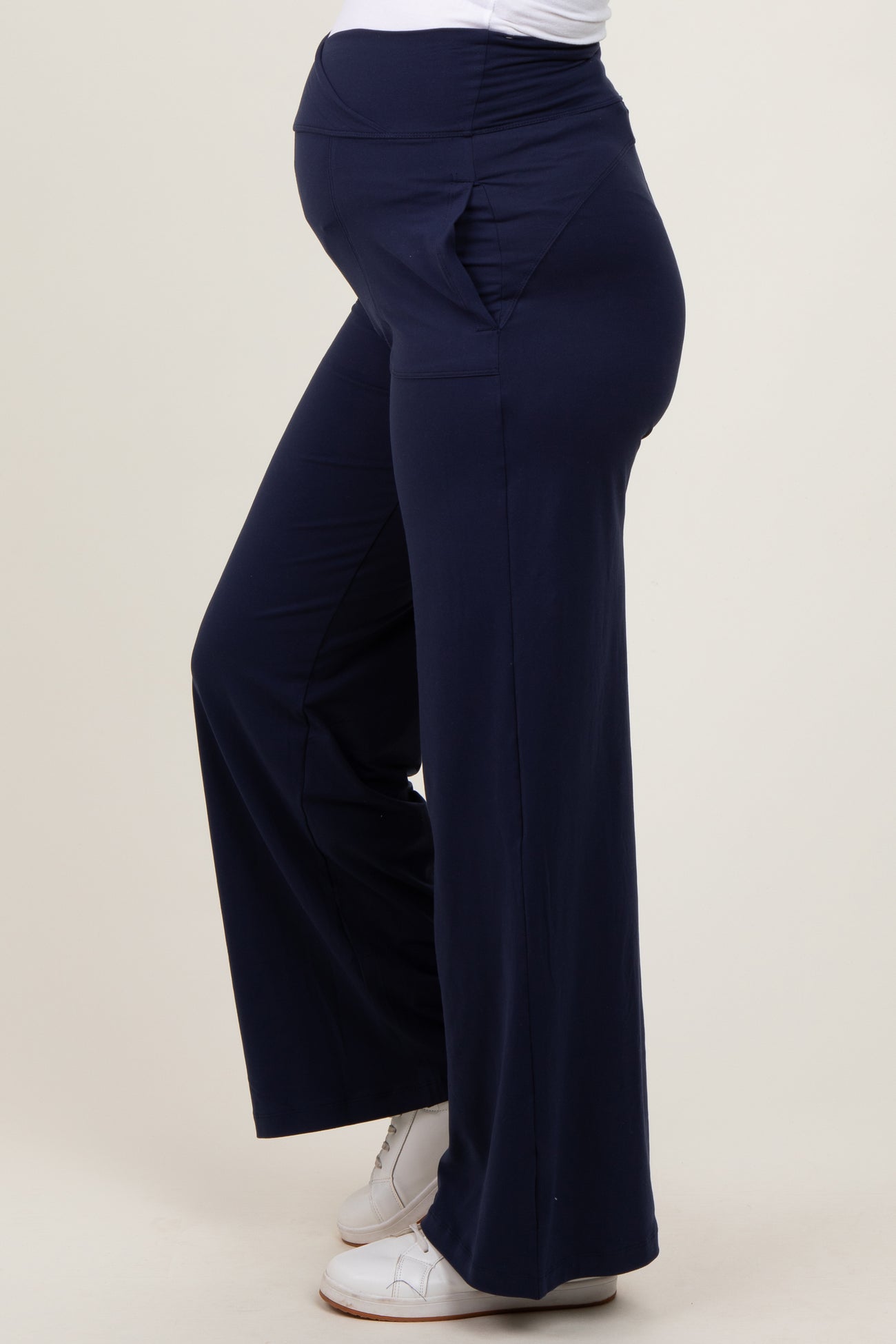 Navy Crossover Waist Active Wide Leg Maternity Pant