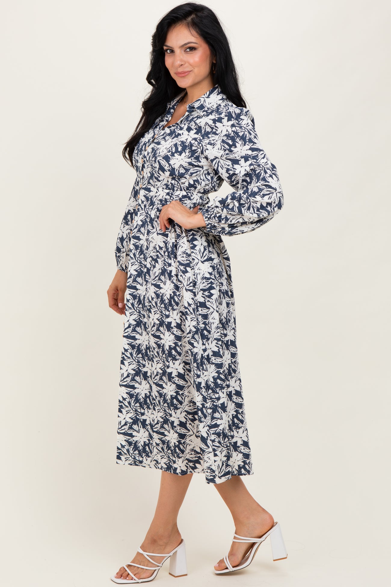 Step into effortless elegance with our Navy Floral Button Down Long Sleeve Midi Dress. Featuring a timeless navy and white floral print, this dress offers a flattering button-down front and a midi length that sways gracefully with every move. The long sleeves add a touch of sophistication, making it perfect for both casual days and dressier occasions. Crafted from lightweight, breathable fabric, it ensures comfort all day long. Pair it with your favorite heels or sandals for a versatile look that’s both chic and comfortable. Elevate your wardrobe with this must-have floral midi dress!