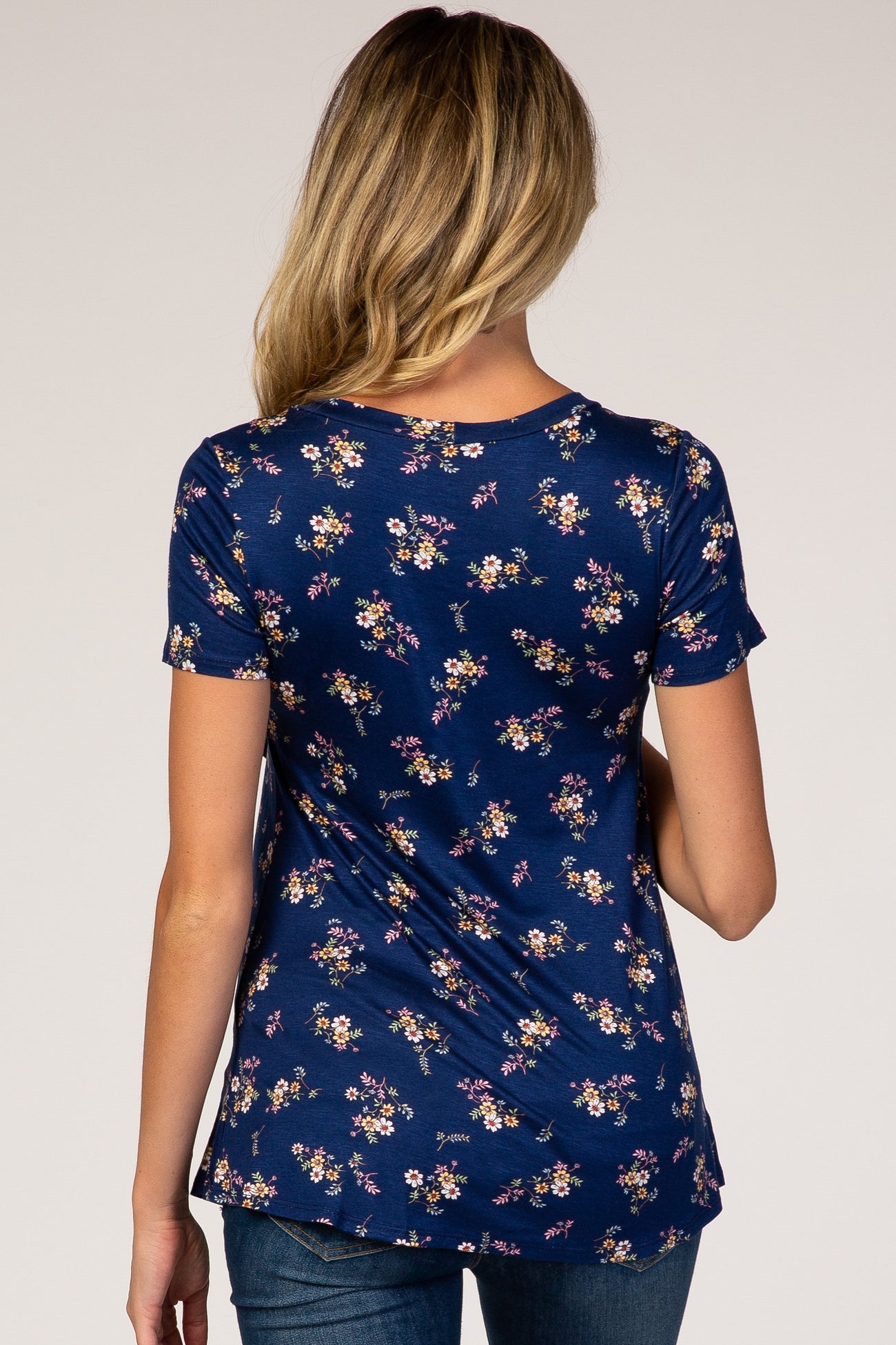 Navy Floral Layered Wrap Front Maternity/Nursing Top