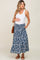 A floral print pleated maternity midi skirt featuring side pockets and a smocked waistband.