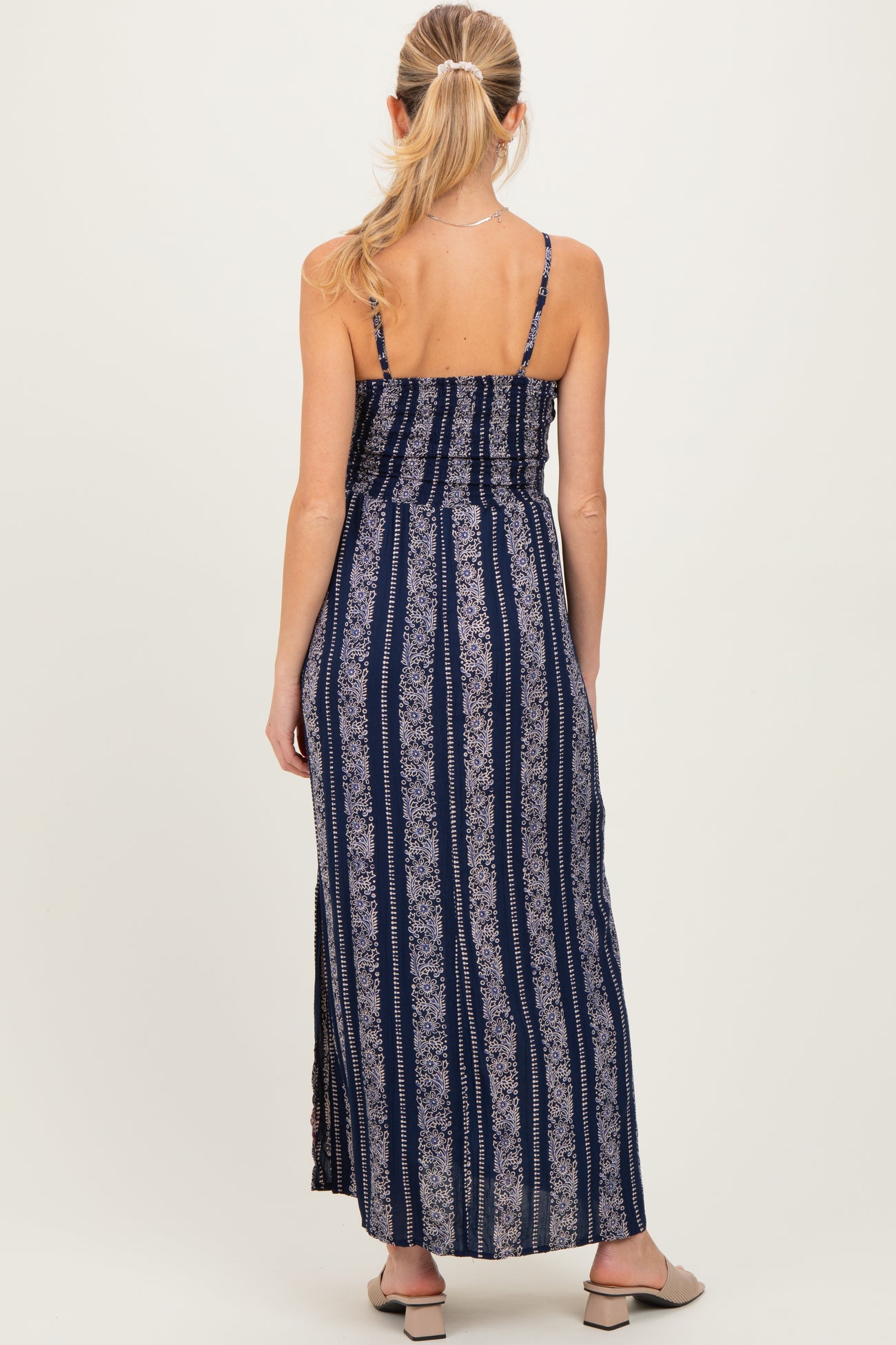 Navy Floral Stripe Twisted Front Maternity Maxi Dress
