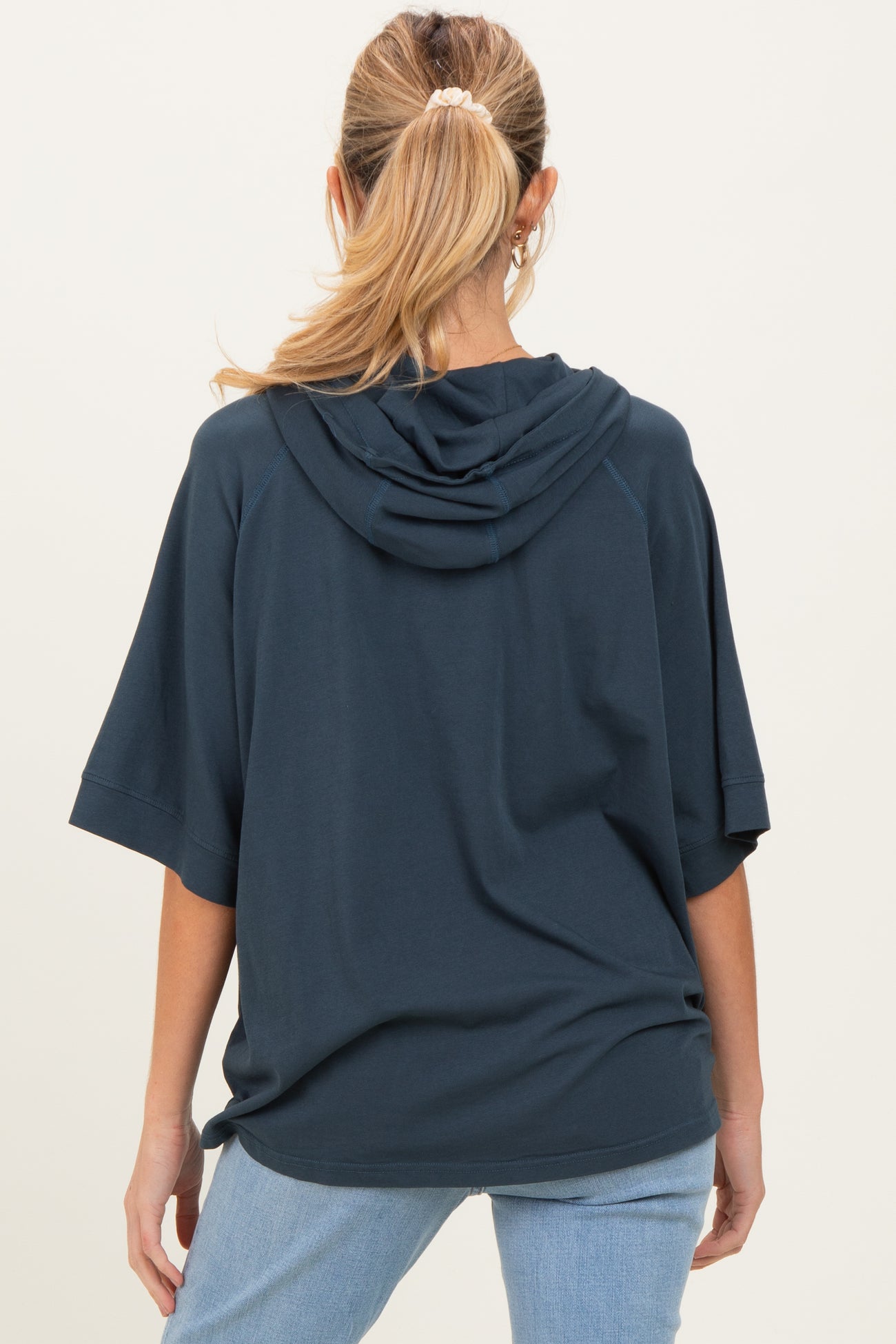 Navy Hooded Short Sleeve Maternity Top