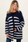 Navy Knit Striped Long Maternity Cardigan