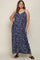 Navy Leaf Print Double V-Neck Maternity Plus Maxi Dress