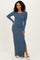 Navy Ribbed Long Sleeve Side Slit Maxi Dress