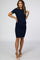 Navy Ribbed Ruched Side Fitted Short Sleeve Maternity Dress