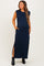 Navy Sleeveless Side Slit Maternity Midi Dress