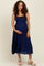 Navy Smocked Ruffle Strap Tiered Maternity Midi Dress