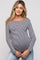 A striped maternity top with a rounded neckline, long sleeves, and a back keyhole button closure.