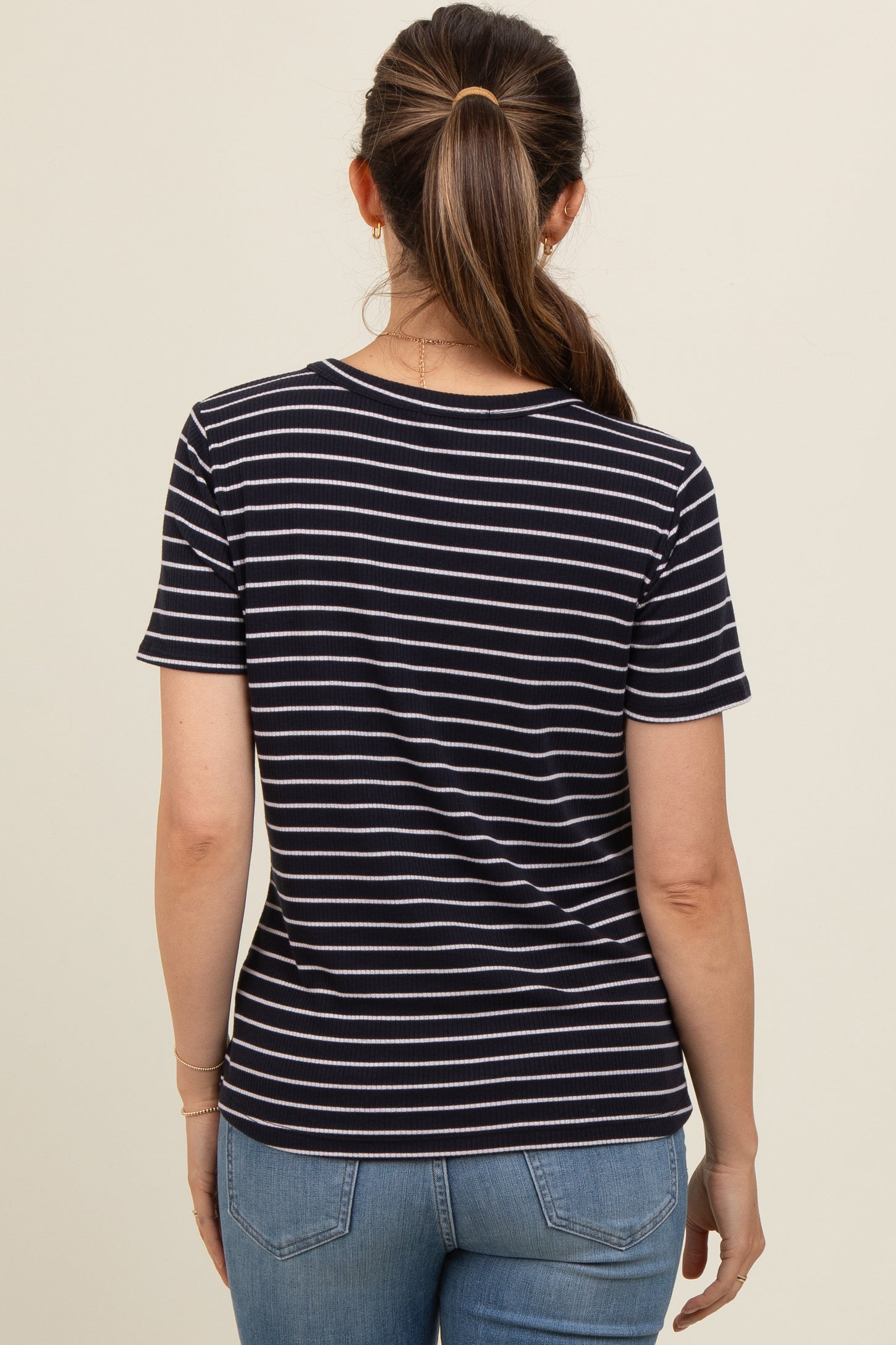 Navy Striped Short Sleeve Maternity Top