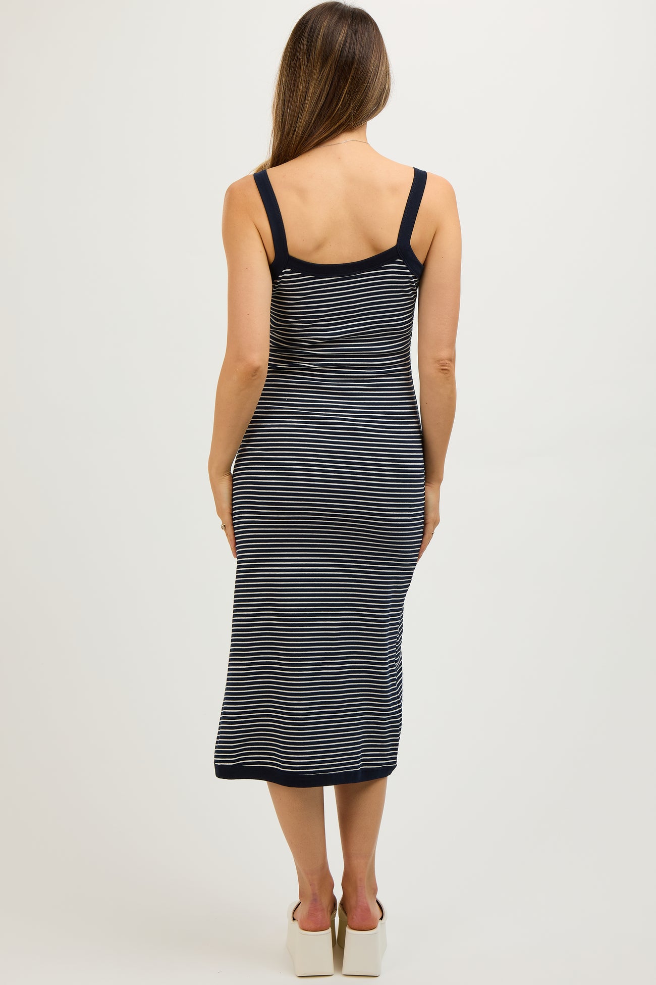 Navy Striped Sleeveless Fitted Side Slit Maternity Dress