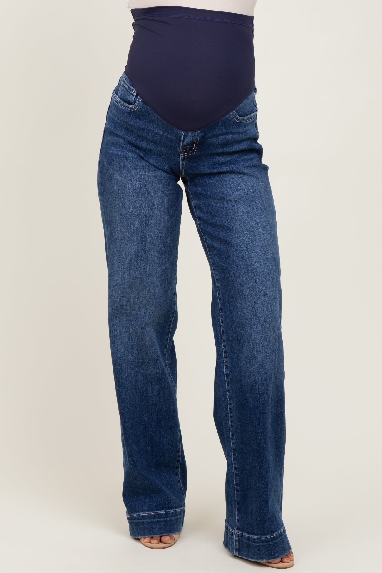 Navy Trouser Hem Wide Leg Maternity Jeans