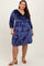 A velvet floral plus dress featuring 3/4 sleeves and a ruched v-neckline.