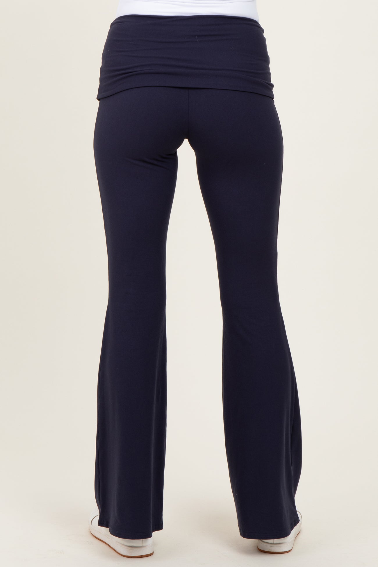 Experience comfort and style with our Navy Wide Fold-Over Flared Maternity Pants. Designed to adapt to your growing bump, these pants feature a soft, stretchy fold-over waistband that provides gentle support without sacrificing comfort. The flared leg offers a flattering silhouette that moves gracefully with you, perfect for both casual and dressier occasions. Made from breathable, lightweight fabric, these pants keep you feeling cool and comfortable all day long. Pair with your favorite tops and shoes for an effortlessly chic maternity look. Ideal for every stage of pregnancy, these pants combine functionality and fashion seamlessly.
