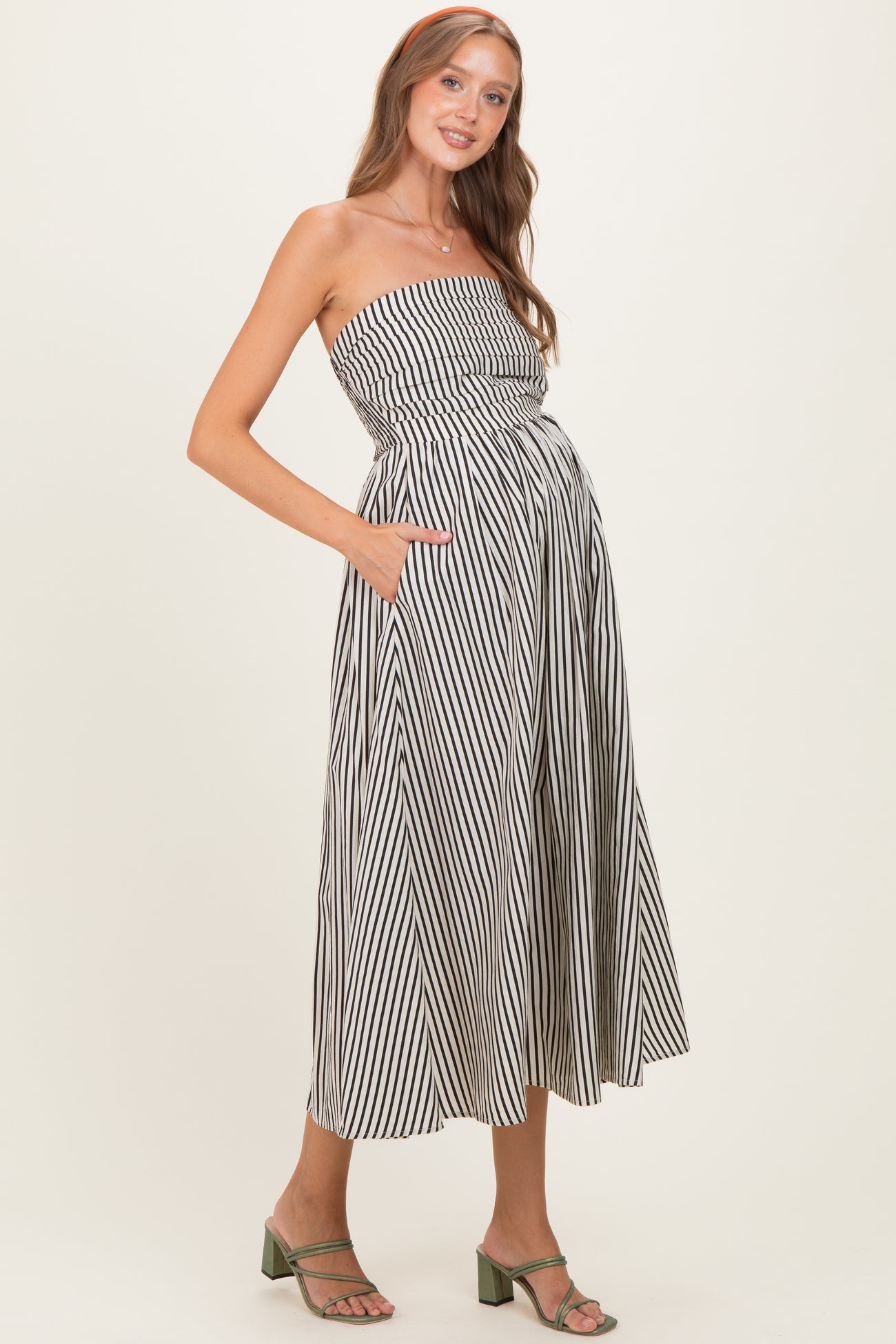 Off White Striped Strapless Maternity Maxi Dress