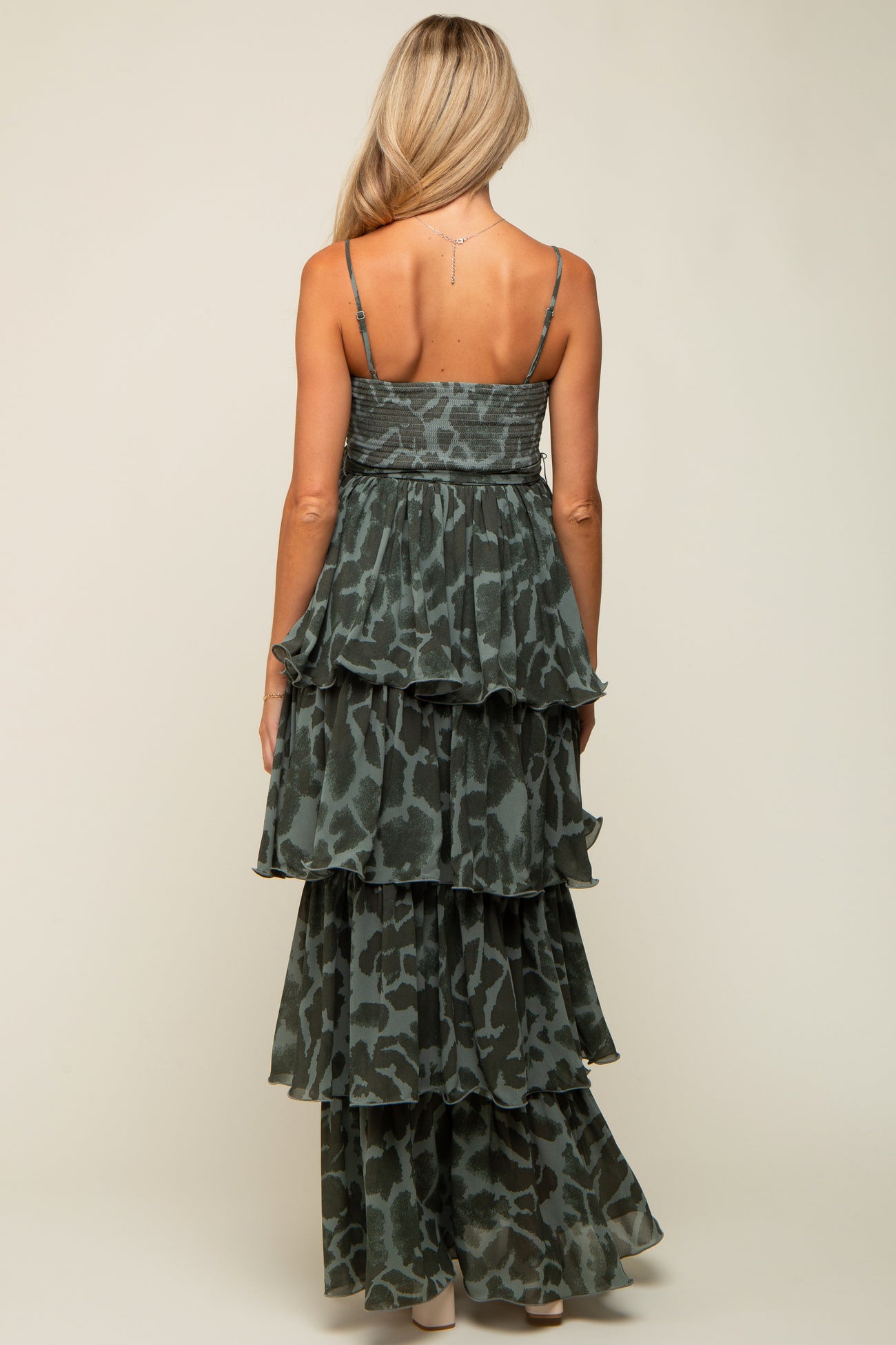 Olive Animal Print Flounce Tier Maternity Maxi Dress