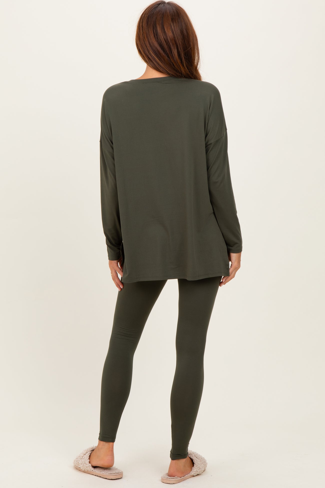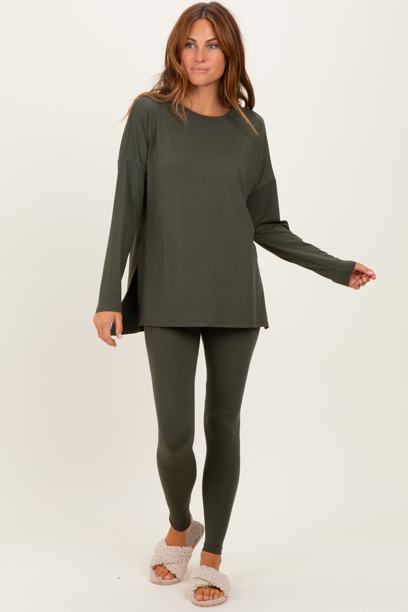 Olive Brushed Knit Oversized Top and Legging Set