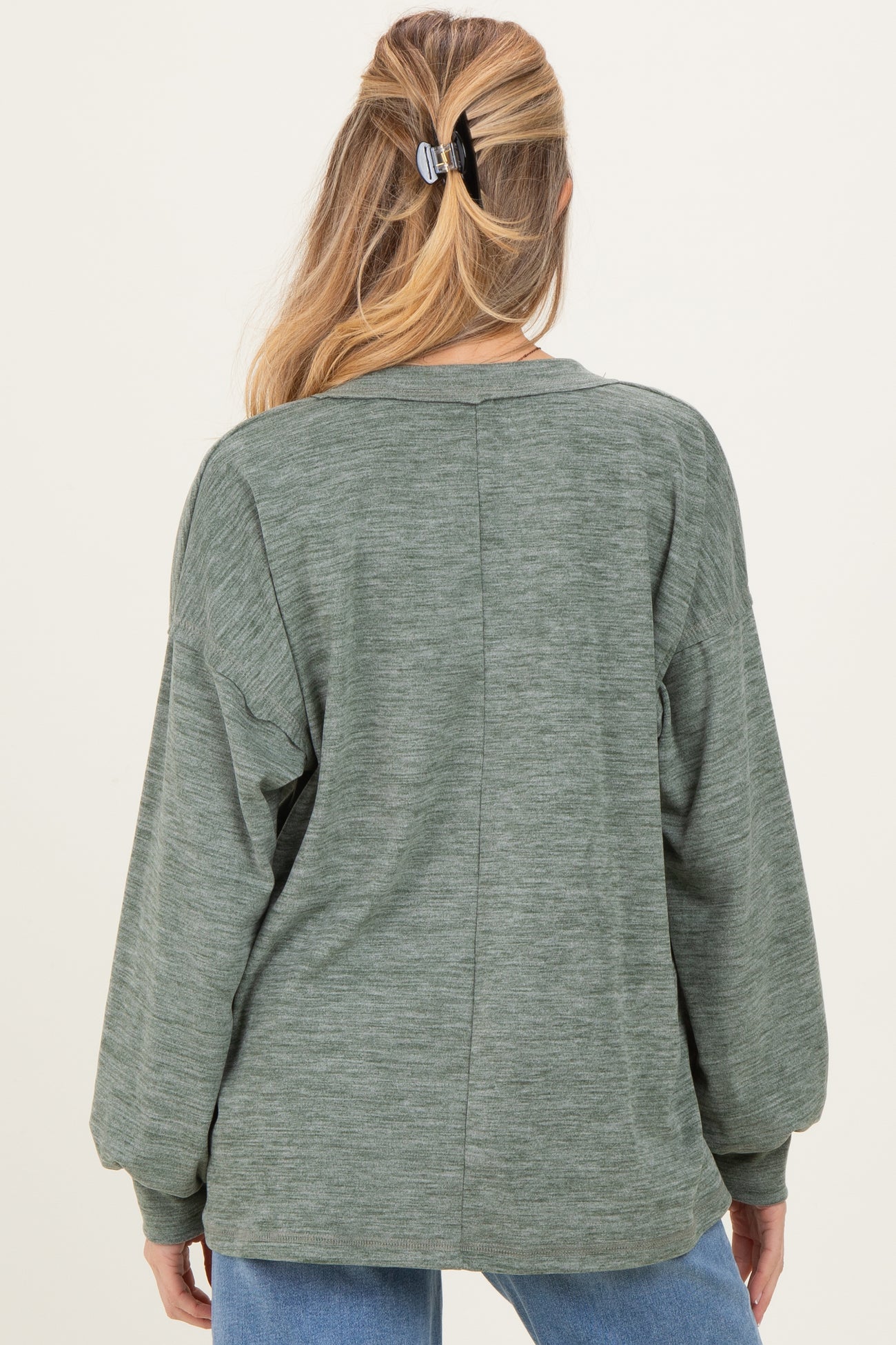 Olive Brushed Long Sleeve V-Neck Maternity Sweatshirt