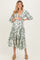Olive Damask Smocked Ruffle Tier Maternity Midi Dresses