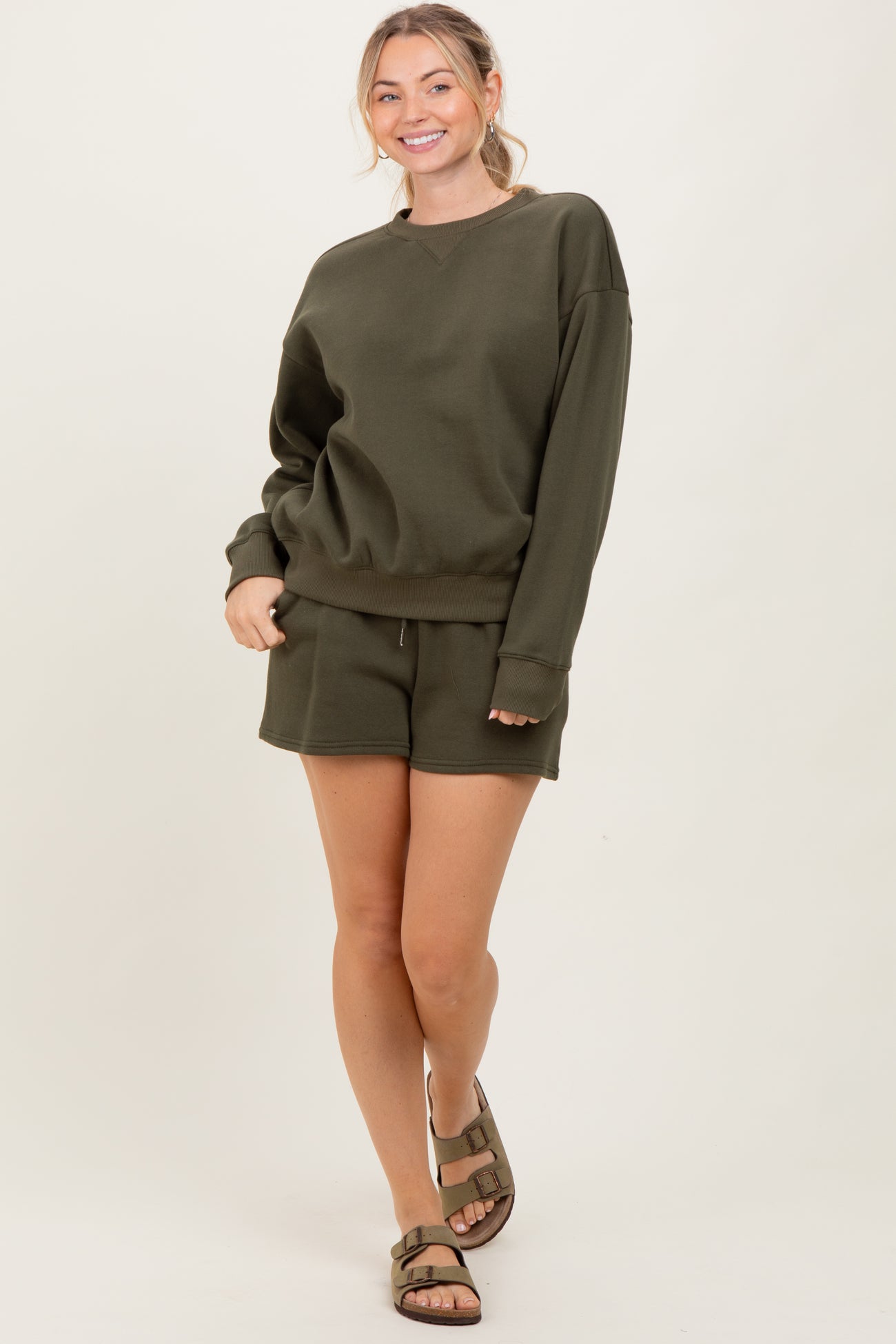 Olive Fleece Sweatshirt Shorts Set